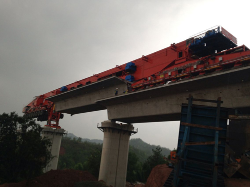 截止到2017年4月17日,由通聯(lián)科技生產(chǎn)的900噸運架一體式架橋機安全完成昌贛鐵路第100片梁的架設。 此臺架橋機自完成現場(chǎng)安裝調試投入使用以來(lái),憑借良好的性能和極高效率, 得到了客戶(hù)單位和監理單位的一致好評。