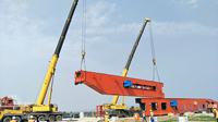 ??通聯(lián)科技為泰國曼谷6號高速公路班帕因至呵叻府II段設計制造的第一臺550t-70t-40m節段拼裝式架橋機具備發(fā)貨條件,近期將發(fā)往泰國。??...