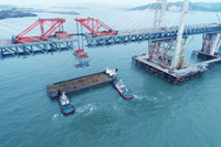 2019年9月25日,隨著(zhù)長(cháng)14m、寬36.8m、高15m、重473t的合龍段鋼桁梁被穩穩地提升到設計位置,與合龍口兩側鋼桁梁節段精準連接,平潭海峽公鐵大橋三座航道橋之一的鼓嶼門(mén)航道橋成功合龍,通聯(lián)科技研制的1100t橋面吊機在此次大橋合龍當中發(fā)揮了相當重要的...